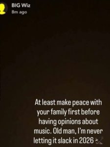 “At least make peace with your family first before having opinions about music. Old man, I’m never letting it slack in 2026.” — @wizkidayo