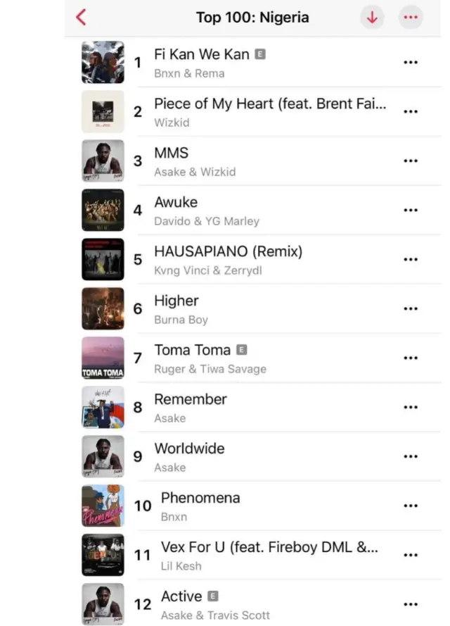 Wizkid’s Piece of My Heart also maintains a strong presence on the charts, showing that while Kese has stumbled, Wizkid’s impact remains undeniable through his other releases.