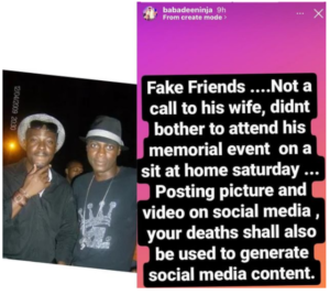 He said such friends used his brother’s death to generate social media contents, and then cursed them.\