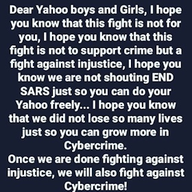 She then promised we would start a campaign to END CYBER CRIME once #EndSARS is over.